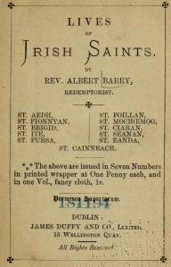 When the Chieftain of Corca-Bhaiscinn made war on the people of Corcomruaidh (Burren), Seanan had to go with him to fight. The two tribes fought against each other like beasts; and the invaders were put to flight with great slaughter. Seanan hid himself in a wheat-stack as soon as he saw his kinsmen flying from the onslaught of their foes. He was soon found. But when thirsting for his blood they endeavoured to drag him from his hiding place, they were driven away by a wonderful light that shone around him. They then said to him, “Tell us who are you and what has brought you here.” He answered, ” I belong to the tribe that made war on you, and I came here in order to hide from you.” They not only spared his life, but even treated him well, for they saw his face shining like an angel.